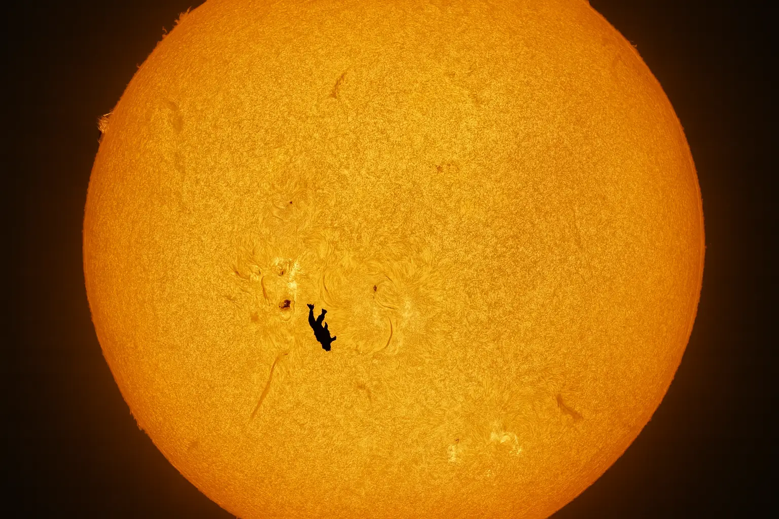 W porównaniu z odległością Słońca (prawie 150 milionów kilometrów) i pułapem ISS (około 400 kilometrów), najnowsza fotografia łączy skrajne skale: skoczek był zaledwie 2 kilometry od kamery. Ta bliskość dała McCarthy’emu tylko ulotne ułamki sekundy na idealne nałożenie sylwetki człowieka na szczegółową, ziarnistą strukturę fotosfery.